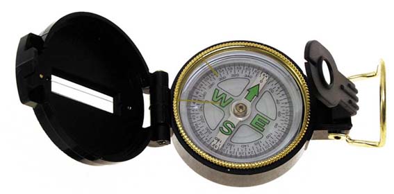 flüssigkeitsgedämpft, Plastikgehäuse, Visiereinrichtung im Deckel, Vergrösserungsglas im Sucher