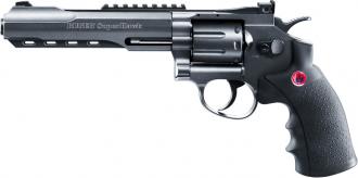 8 Schuß,Energie: bis 5 Joule, Länge: 180mm, Gewicht : 848g, Abzug: Single Action.